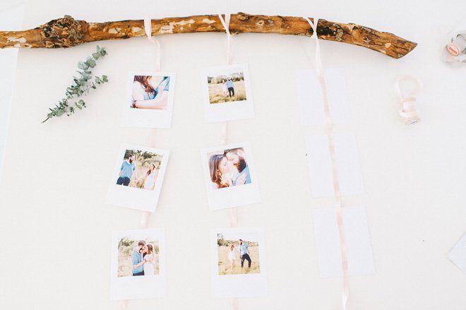 Schritt 3: Fotos mit Schnur am Ast befestigen