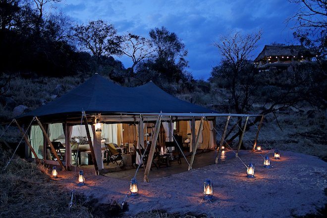 Tarangire Treetops_bed room Serengeti Pioneer Camp_tent exterior at night 2
