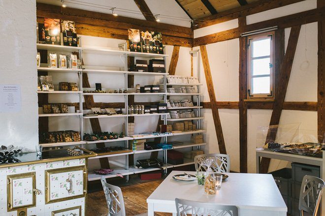 Herrliches Hüftgold bietet die Chocolaterie auf Schloss Staufenberg. Feine Schokoladen, frische Pralinen und Macarons und hausgemachtes Eis erwarten die Besucher. Ein paar Tische laden auch zum Einkehren ein, nach einer Wanderung mit Blick auf die Weinberge schmeckt der schöne Süßkram noch mal so gut.