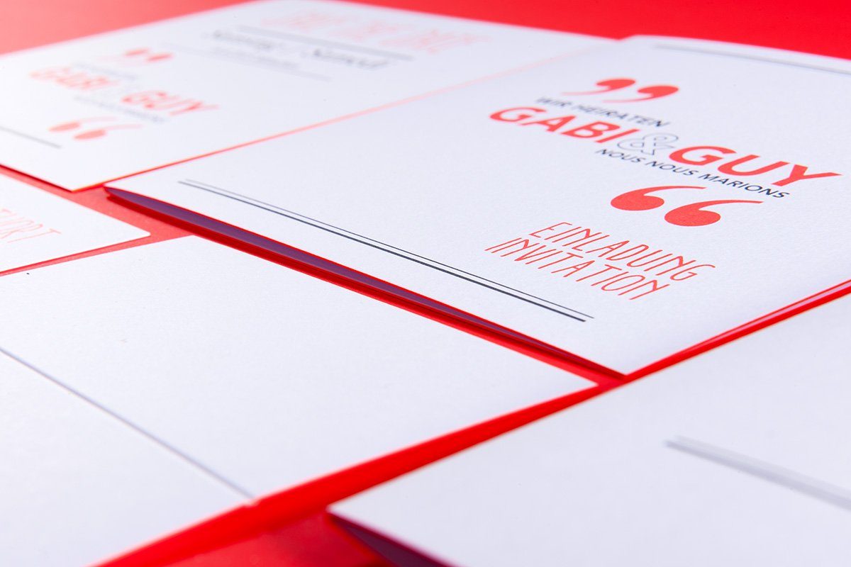 Auch moderne Techniken mit knalligen Trendfarben und plakativen Designs sind willkommen! Neonfarben oder die Farbe des Jahres ‘Ultraviolett’ werden mit der richtigen Drucktechnik auf dem perfekten Papier zum Hingucker. Eine stimmige Gesamtkomposition entsteht durch das miteinander Wirken der einzelnen Papeteriebestandteile.