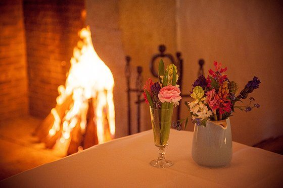 Das Kleid von Maike ist doch einfach ein Traum, oder? Es stammt von Jim Hjlem Occasions. Passend zu diesem Stil gab es hier und dort ein paar Details im Vintage Stil. Kleine Akzente, die den besonderen Charme der Location unterstrichen. Eine gemütliche Feier muss es gewesen sein. In der Ecke loderte ein Kaminfeuer, viele Kerzen tauchten die Räumlichkeiten in ein weiches Licht und frische Blumen holten ein bisschen Frühling auf die Tische.