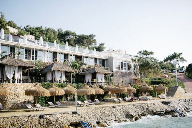 Alle waren eingeladen, dort ein unvergessliches Wochenende am Meer zu verbringen. Dafür hatte das Paar gleich ein ganzes Hotel gemietet – in einem kleinen Nachbarort von Bodrum, in Torba. Die Wahl fiel auf das idyllisch gelegene Sarpedor Boutique Hotel & Spa. Dort setzte Maja von Schmeling das gewünschte Konzept ‘zarte Romantik’ in den Farben altrosa und weiß absolut traumhaft um – türkischen Charme und einen Hauch von 1001 Nacht bekam das ganze rein optisch mit einer Prise gold, das bei den Platztellern und den Kerzenleuchtern aufgenommen wurde.