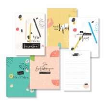 10 Jahre Fräulein K sagt Ja feiern wir mit einer eigenen Kollektion! Im fröhlich modernen Design haben wir hübsche und nützliche Produkte für Bräute, Trauzeuginnen und alle, die noch immer verliebt sind, entworfen. Habt viel Freude mit unserer 'Happy' Jubiläumskollektion!