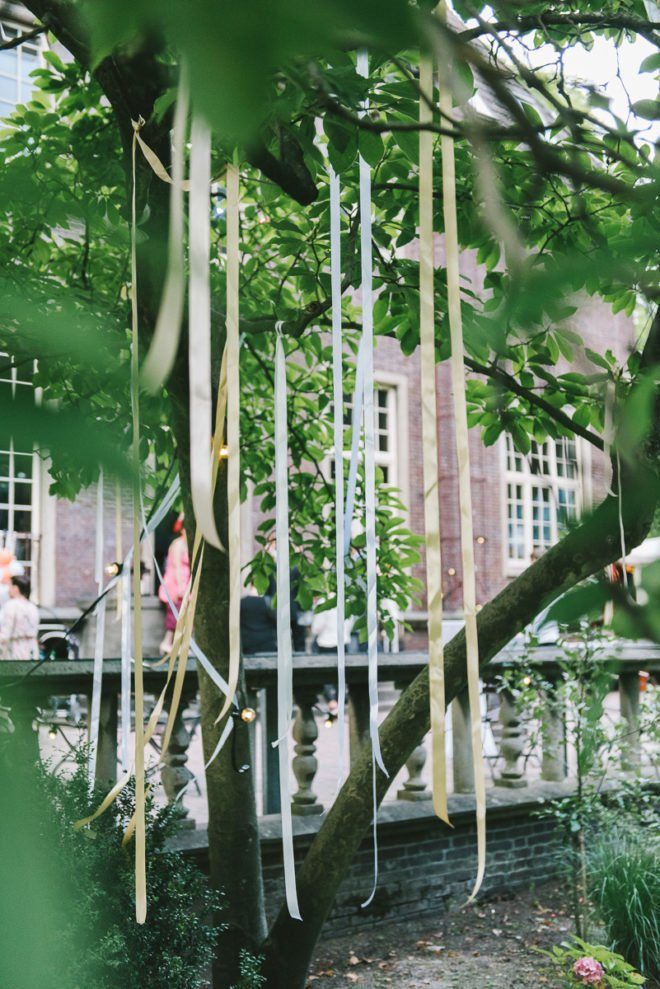 Wie heißen die guten Dekofreunde von Lampions? Richtig, Satinbänder! Auch diese durfte in Hülle und Fülle nicht fehlen. Als Hintergrund bei der Trauung, an den Fenstern, der Bar… Mixt Eure Hochzeitsfarben und verschiedene Breiten und verschönert so markante Stellen der Location.