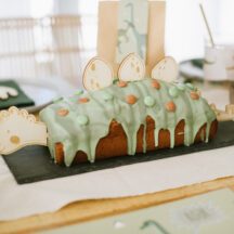 So einfach geht es: Kuchen backen oder kaufen dekorieren und die Dino Stecker in den Kuchen oder in die Muffins stecken. Fertig ist der Dino-Kuchen. Diese Dino Party wird der Knaller.