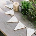 Schönes Accessoire für (Hoch)beete oder Blumenkästen: Wimpelkette mit 7 Holzwimpeln, die sich beliebig arrangieren lassen. Auf einen Wimpel gravieren wir Euren Wunschtext, z.B. ‘Gartenliebe’, ‘Gemüsebeet’ oder den Familiennamen.