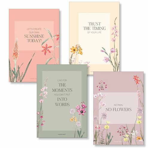 Ein Set aus vier zauberhaften Postkarten mit Sprüchen zum Leben.
