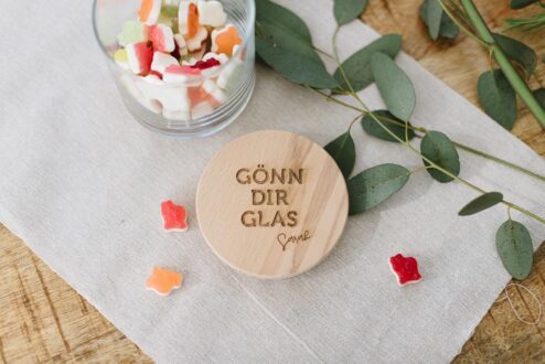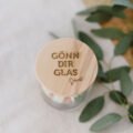 Manchmal muss man sich doch einfach etwas gönnen! In unserem Vorratsglas mit dem Spruch ‘Gönn Dir Glas’ und individuell personalisiertem Namen auf dem Holzdeckel lassen sich alle möglichen Leckereien, wie Bonbons, Fruchtgummi, Nüsse, Schokolade oder ein paar Kekse super gut aufbewahren. Ein Blickfang im Regal ist es allemal. Und obendrein eine sehr schöne und persönliche Geschenkidee für einen lieben Menschen.